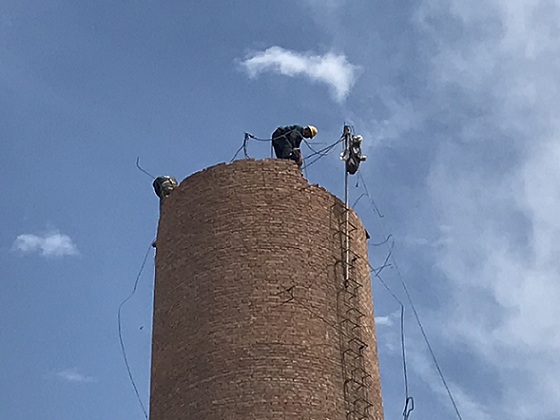 煙囪拆除前的防護及設備安裝鍋爐磚煙囪拆除