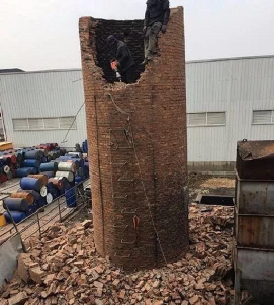3、煙囪拆除前,應仔細檢查爬梯腐蝕程度,不安全的地方進行加固,以便施工上下。