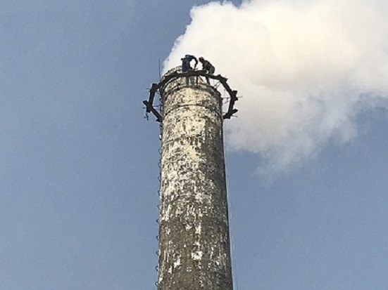 上圖展示的煙囪拆除加高項目是我司13年中旬完成的項目。該公司一共三座煙囪,其中兩座拆除,留下這座繼續(xù)使用,經(jīng)過加高后的煙囪已經(jīng)正常投產(chǎn)。