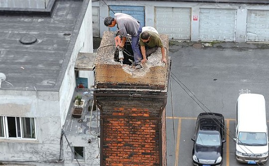 五、煙囪人工拆除法通常在搭設(shè)關(guān)閉腳手架,操作層應(yīng)滿鋪腳手板并設(shè)有踢腳板和護欄,滿掛密目阻燃安全網(wǎng),操作人員站在腳手架上用榔頭(錘子)、撬棍或風(fēng)鎬進行拆除施工,拆除資料從煙囪內(nèi)下落,在煙囪底部朝門的方向設(shè)置一塊斜板,下落的拆除資料主動滑出門外,以便及時清運。關(guān)于鋼筋混凝土煙囪的拆除施工,腳手架上應(yīng)設(shè)置切開鋼筋的風(fēng)割設(shè)備和下吊鋼筋的吊桿設(shè)備。